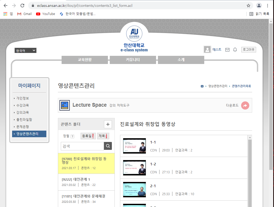 1. 이클래스(https://eclass.ansan.ac.kr)를 접속합니다.
